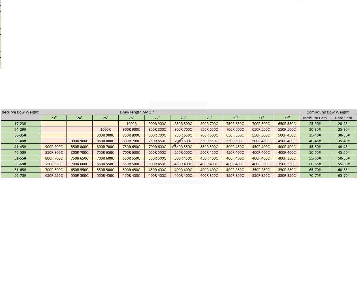 | Spine | Outer Diameter | GPI | AMO Stock Length | Point Weight |